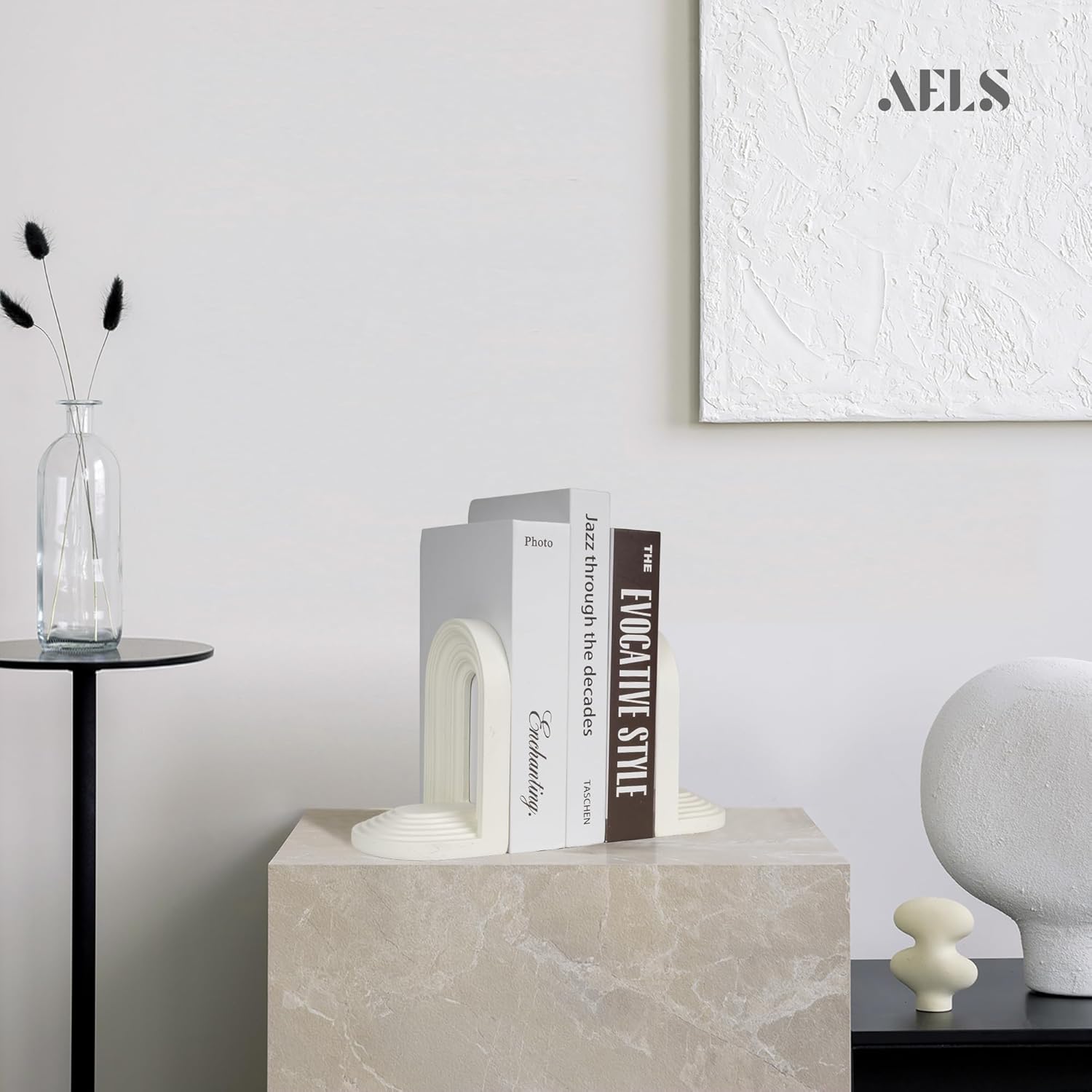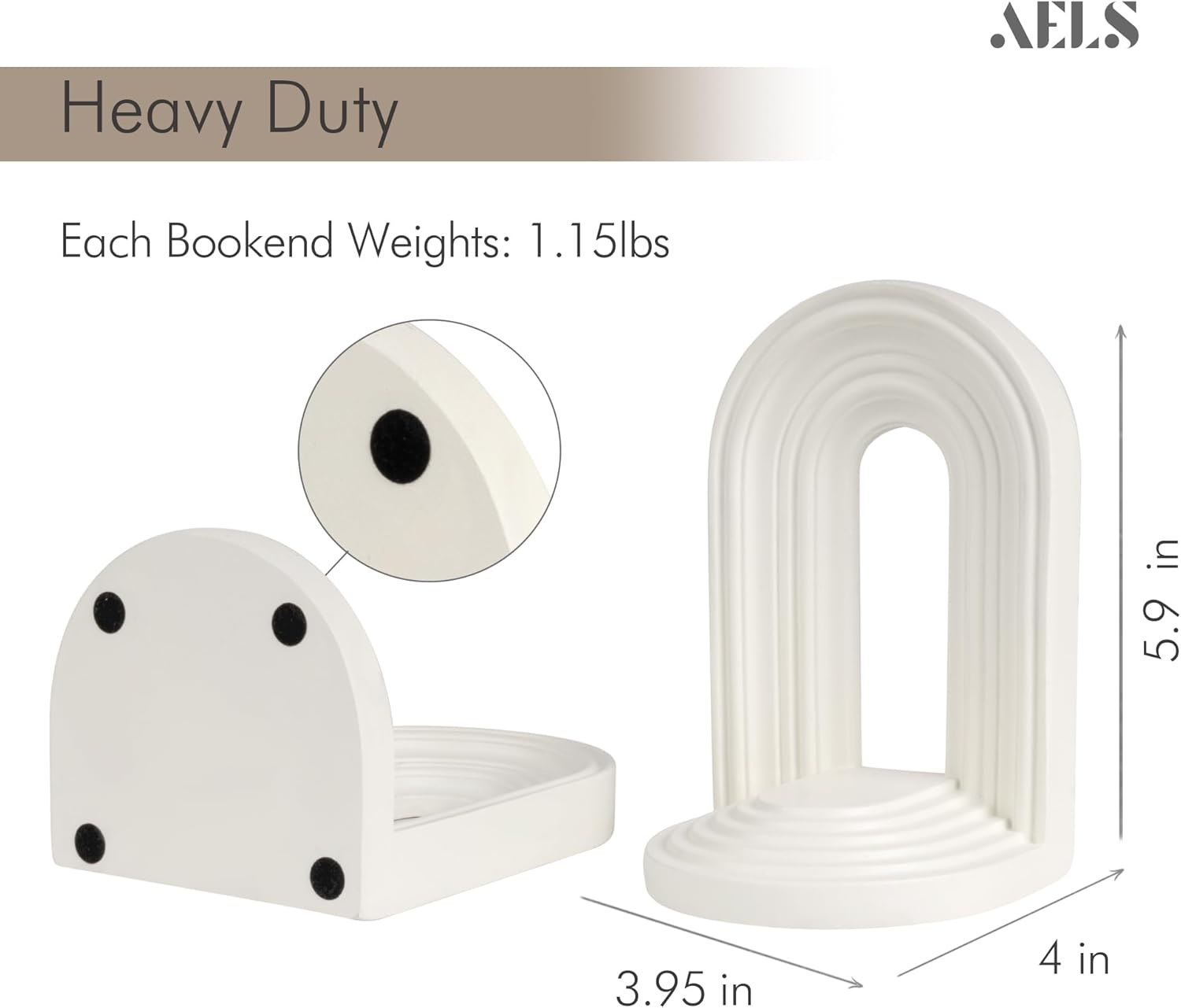 AELS Mordern Bookends, Mid Century Arch Heavy Duty Book Ends, Unique Decorative Bookend Supports for Shelves, Office Desktop Book Stand, Stopper for Books/Movies/CD,Cream